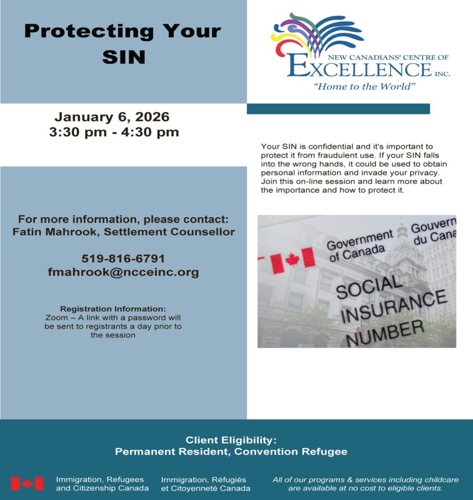 Your SIN is confidential and it’s important to protect it from fraudulent use. If your SIN falls into the wrong hands, it could be used to obtain personal information and invade your privacy. Join this on-line session and learn more about the importance and how to protect it.